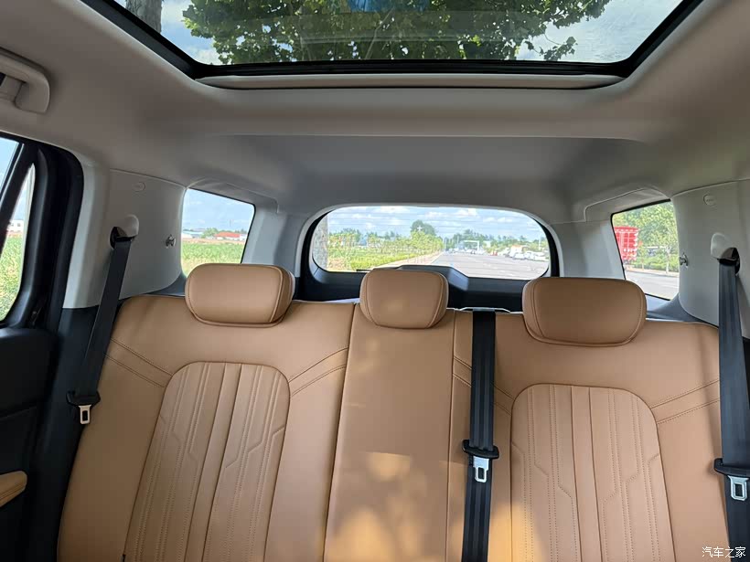 新哈弗H5从外面看上去就很大,尺寸摆在那里,定位也是全尺寸大型SUV,第二排空间坐三个大男人也不挤得慌,坐下都能跷二郎腿。后排靠背放倒后直接变成一个纵深接近2米的纯平后备箱。如果你喜欢露营或者自驾游,完全可以当一个床车,私密性和安全性都有保障,睡着也宽敞。全景天窗打开以后,车里非常亮堂,一点也不压抑。