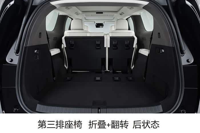 这次的重点是新车申报了一个从后备厢拍摄的图片,可以看到,新车仍然采用三排七座的座椅布局,并且采用2+2+3的传统MPV布局方式。但是由于车长较长,其后备厢保留了相当大的空间,正常情况下,行李厢纵向长度680mm。第三排座椅比较有意思,不仅可以靠背向前折叠拓展空间,也可以向前完全翻起收起,形成更为夸长的储物空间,三排座椅折叠翻转后,行李厢纵深长度达到1066mm。