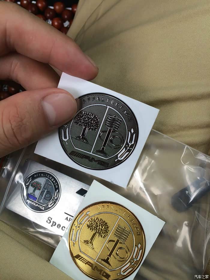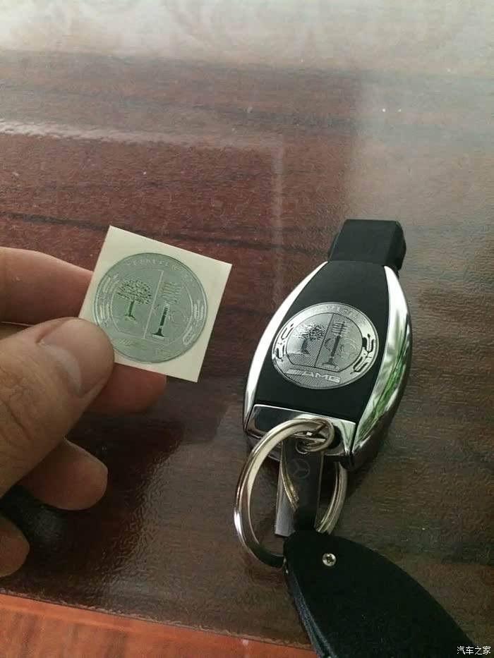 AMG钥匙贴纸是买的几块钱那种,很薄的一层类似锡箔那种纸张的东西,装上去很服帖,但是时间长了就掉了。后来我换了AMG钥匙后壳。