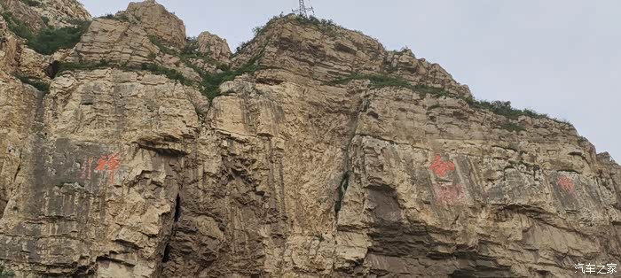 早起,直接导航北岳恒山。途中经过悬空寺。当看见远山这纹状的崖壁,悬空寺就到了。不过,我们计划先去爬北岳恒山,返回时再去游览悬空寺。