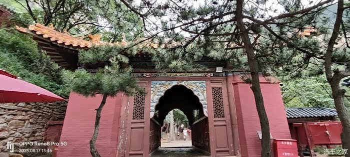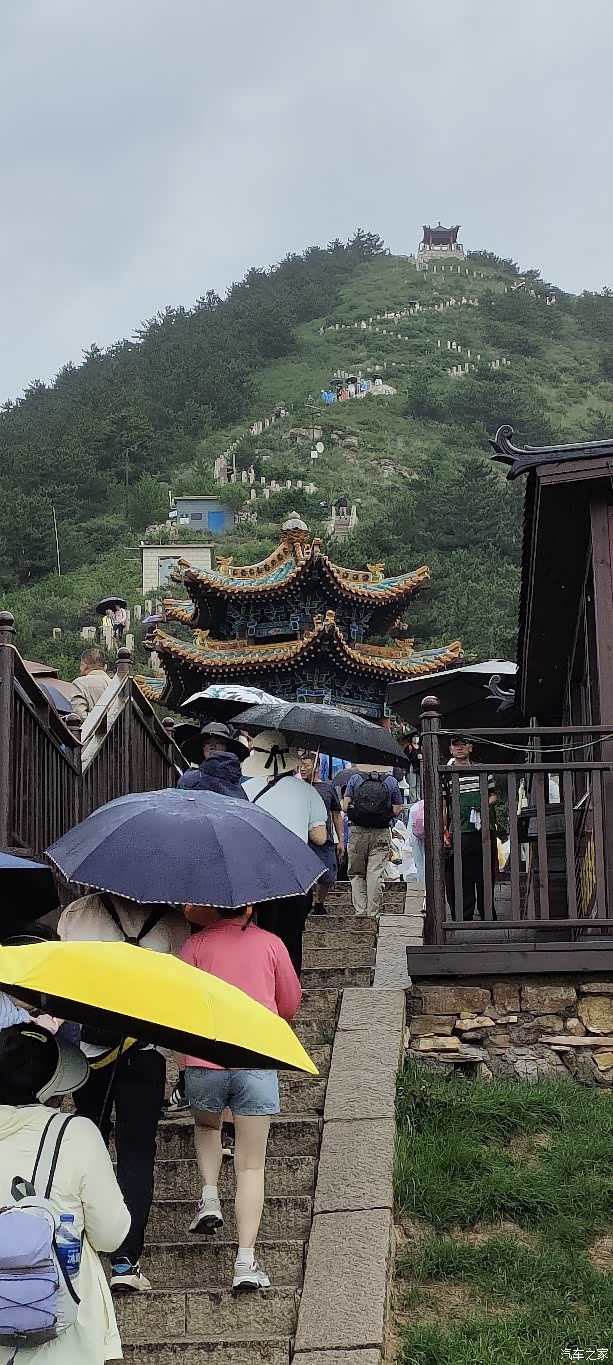 我们先乘缆车到缆车上站,即魁星楼处。望见上山的之字形路我们选择走右边平路,一边游览宫殿道观寺庙,一边绕行徒步上山。