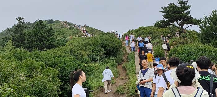 上到山上,与之前"之"字形山路汇合,继续向上,路渐缓,一眼可望见顶。
