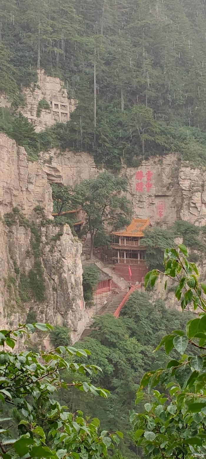 远远看见对面悬空的寺庙,还以为是悬空寺,其实不是。但,寺庙远看确实也悬空!