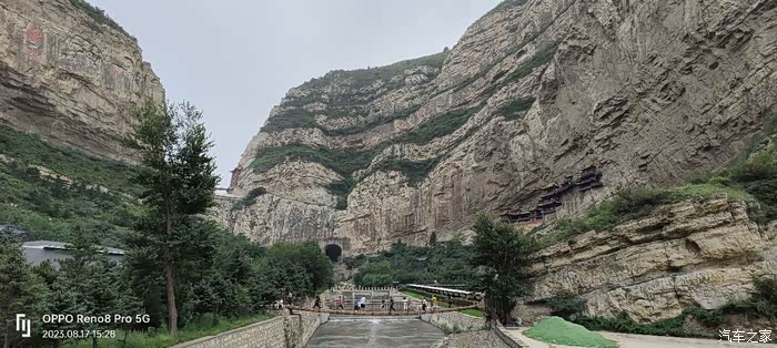 停好车,徒步到悬空寺景区门口。在门外,隔空就可见远处悬空寺庙群。