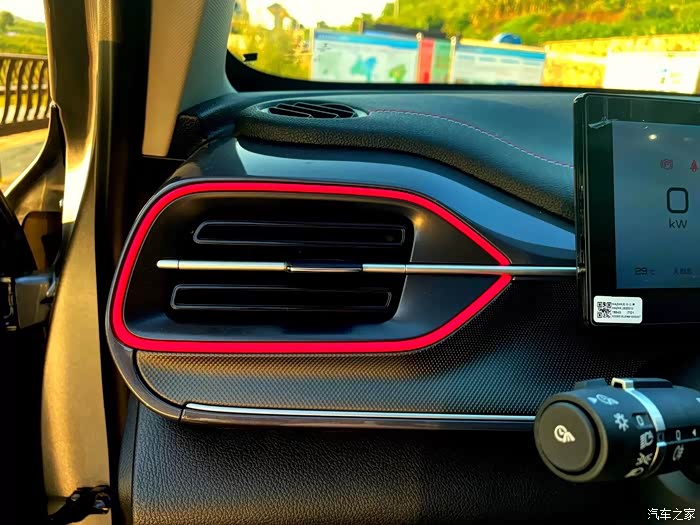 出风口处的红色镶边,怎么说呢,见仁见智,但是我个人是很喜欢的,觉得不丑,提升了车里面的一种感觉,点缀了些许氛围。