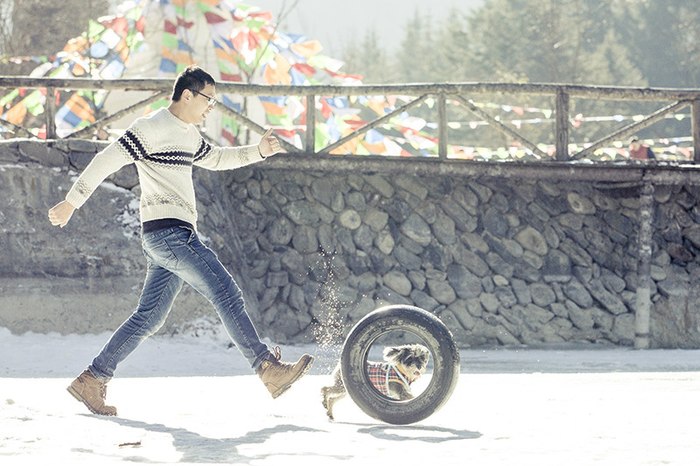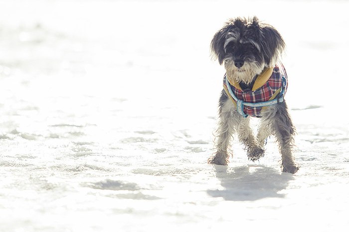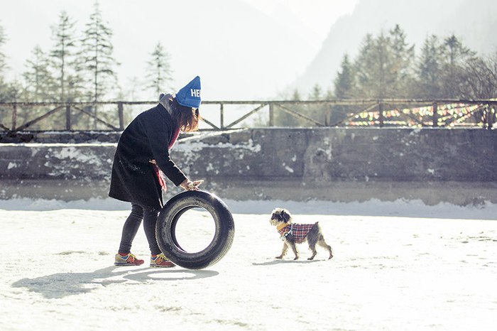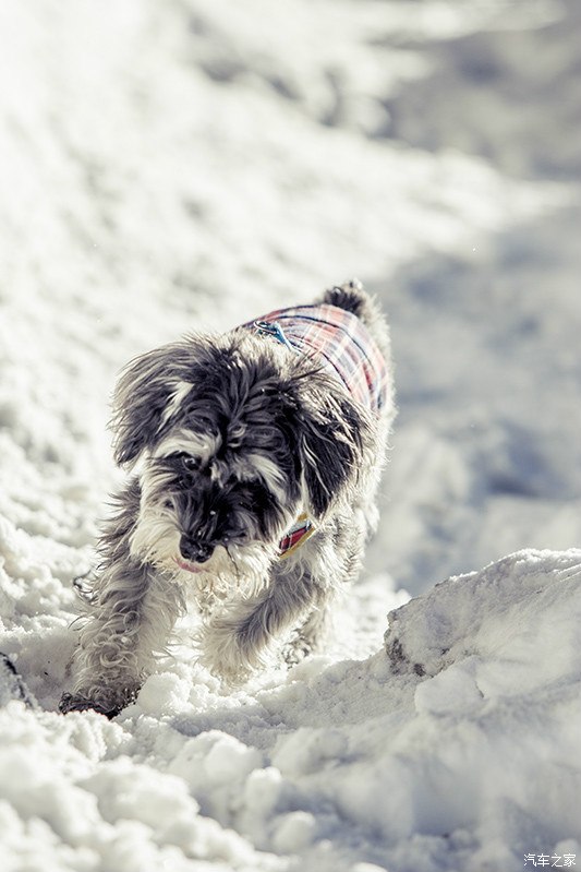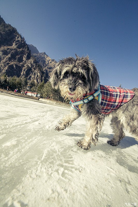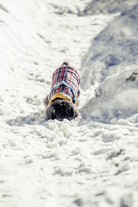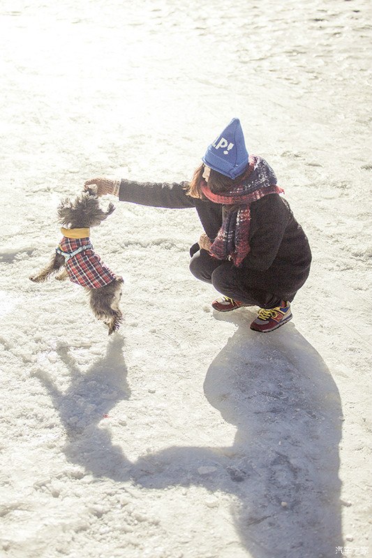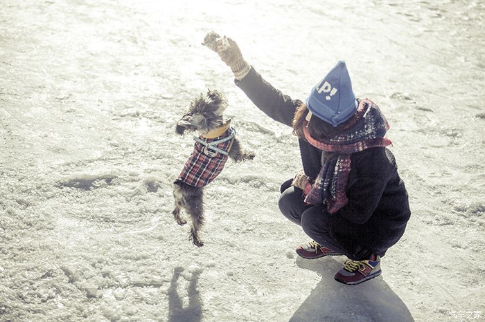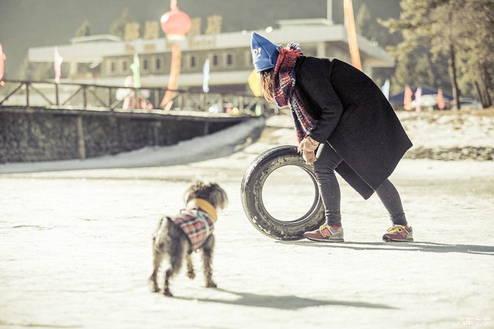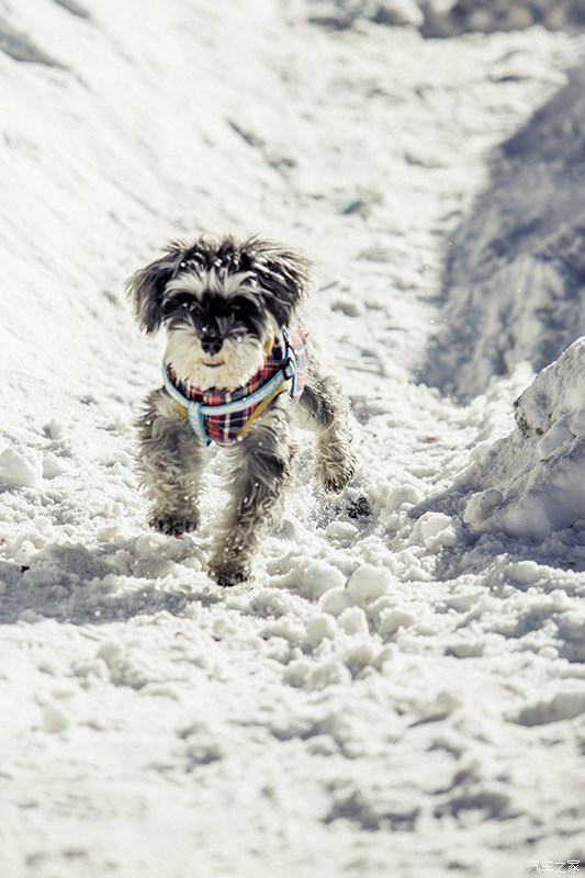 看来雪纳瑞的名字里有雪,所以天生就不怕雪,看到雪就兴奋得不得了,在这个冰面上耍轮胎,只有那么嗨了。