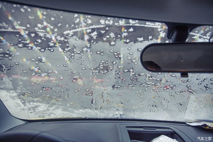 车子在户外停了一晚上,玻璃上起了厚厚的一层冰花,玻璃水也被冻成了冰块,根本喷不出水来。