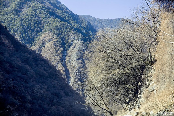 吃完饭,继续往毕棚沟方向前进,拐进毕棚沟那条路之后,一路上坡,这条路需要注意,山阴面没有太阳照射的地方,地面上是有暗冰的,所以开车一定要小心小心再小心,特别是弯道上,快了很危险的。