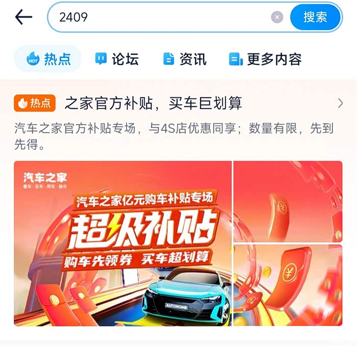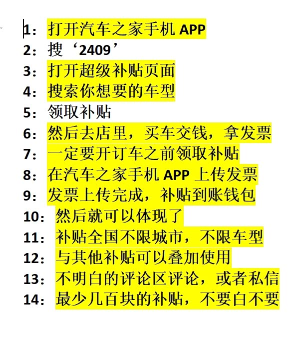 我建议买车之前去汽车之家领取补贴,用汽车之家手机app搜“2409”就能领取补贴了。