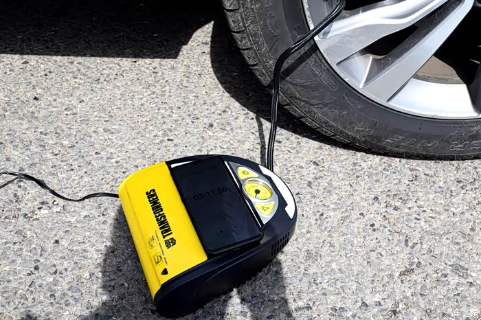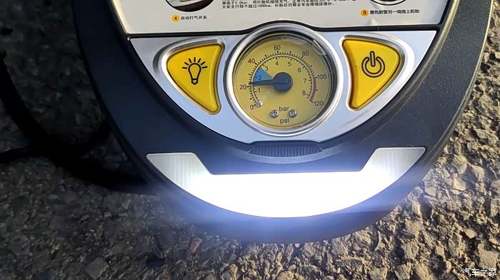 此次评测,为了得到第一手的真实数据,我将车胎的气压从2.7bar放气到1.5bar,就为测试此款补胎机的充气能力以及胎压表是否准确,经过测试充气速度快,胎压数据与车内自带胎压监控系统保持一致,说明此款补胎机还是很不错的,顺便测了一下LED照明灯,效果不错。