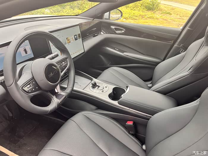 我是很喜欢车子的一个外观,外观和内饰都算,因为我当时选车第一眼看到海豹的时候,我的冲击力是很强的。像现在汽车外观同质化这么严重的时代,看到一辆让我眼前一亮的汽车还是很难的。海报的设计我觉得很有一股麦凯拉伦的影子,特别是低矮的底盘,包括打孔的刹车盘,还有夸张的尾部的扰流板,整体所有的因素都在给予我说这是一辆很运动的车型,当我握到方向盘那一刻,我就觉得这就是我的菜