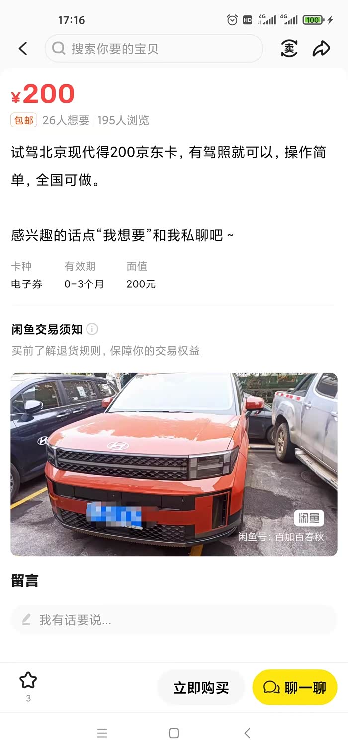 有想试驾新胜达的车友可以在咸鱼搜下这个业务,我没试过,不知道真假,咋地也得试驾得200是200