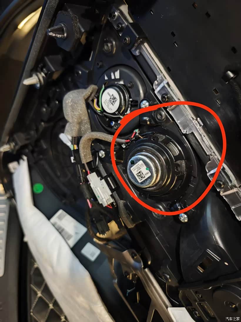 图片来自汽车之家,尊睿版后车门原图,门把手旁边的小喇叭是高音喇叭,下面的是低音喇叭
