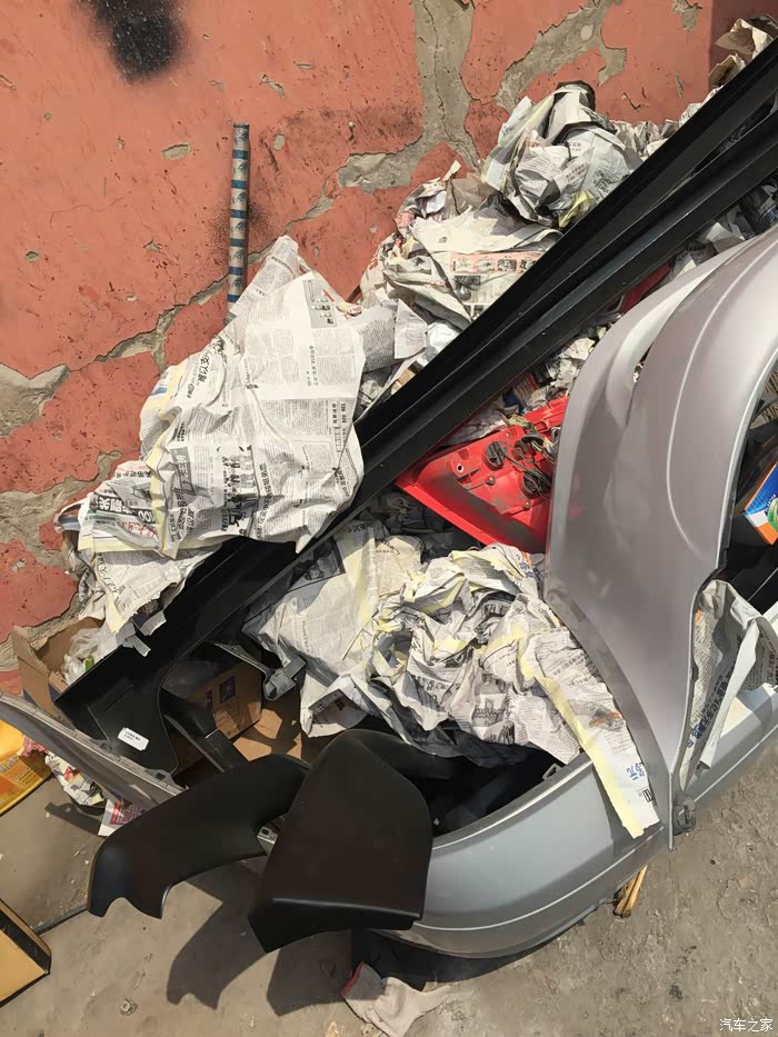 请无视旁边的保险杠。因为包围买来的时候是没有漆的这是送去喷漆,也是装包围的第一步。