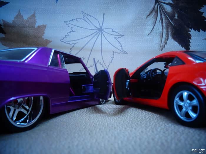 拍摄车型为1:18一汽威志、1:24奔驰sLK350/1:24 1965款雪佛兰迈锐宝/1:32野马谢尔比500