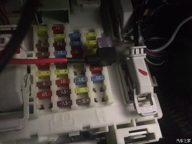 ),这样给手机充电就得从中间扶手箱里的USB口取电,那么问题来了,手机是充电了,优盘里的歌却听不了了。所以就萌生了让行车记录仪从保险盒取电的念头,一是腾出来点烟器插口,二一个也是改完以后锁车以后行车记录仪就断电。其实取电线什么的早就买好了