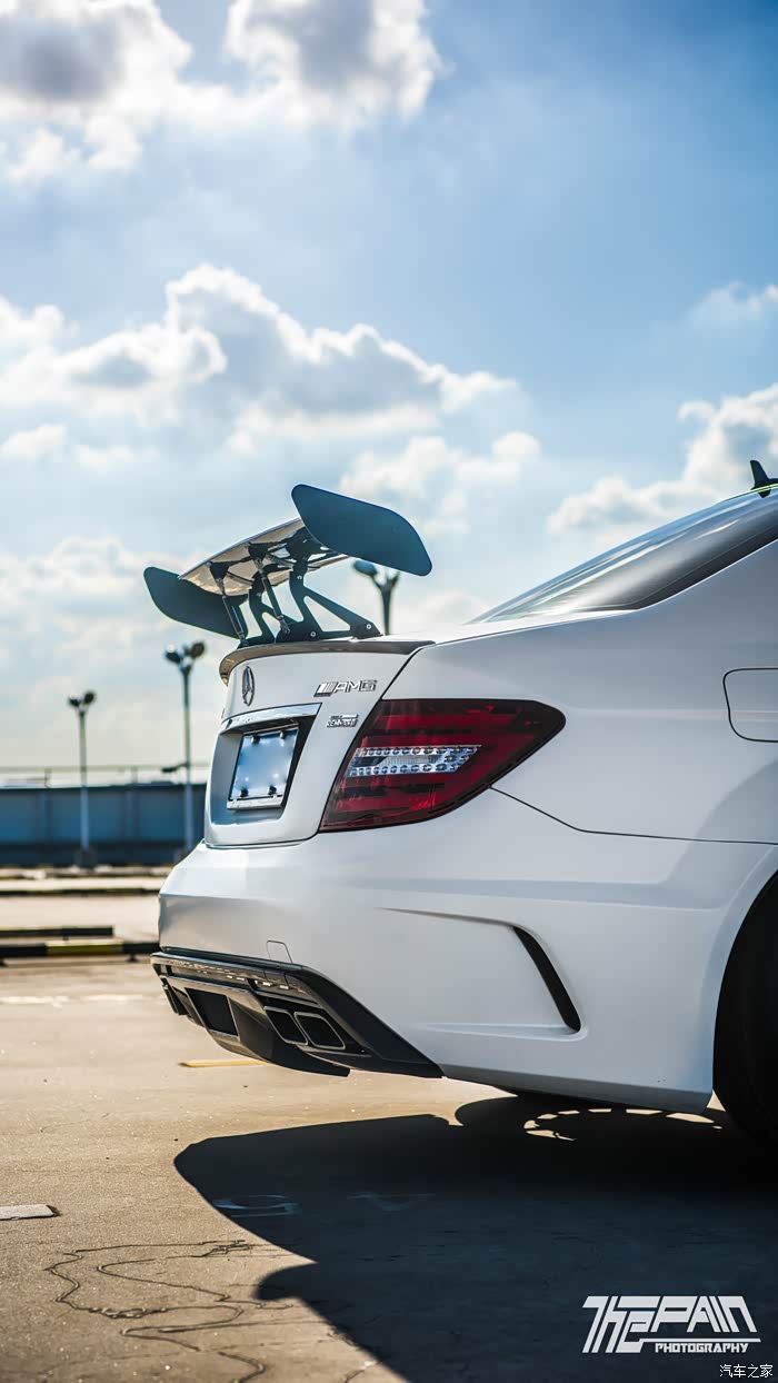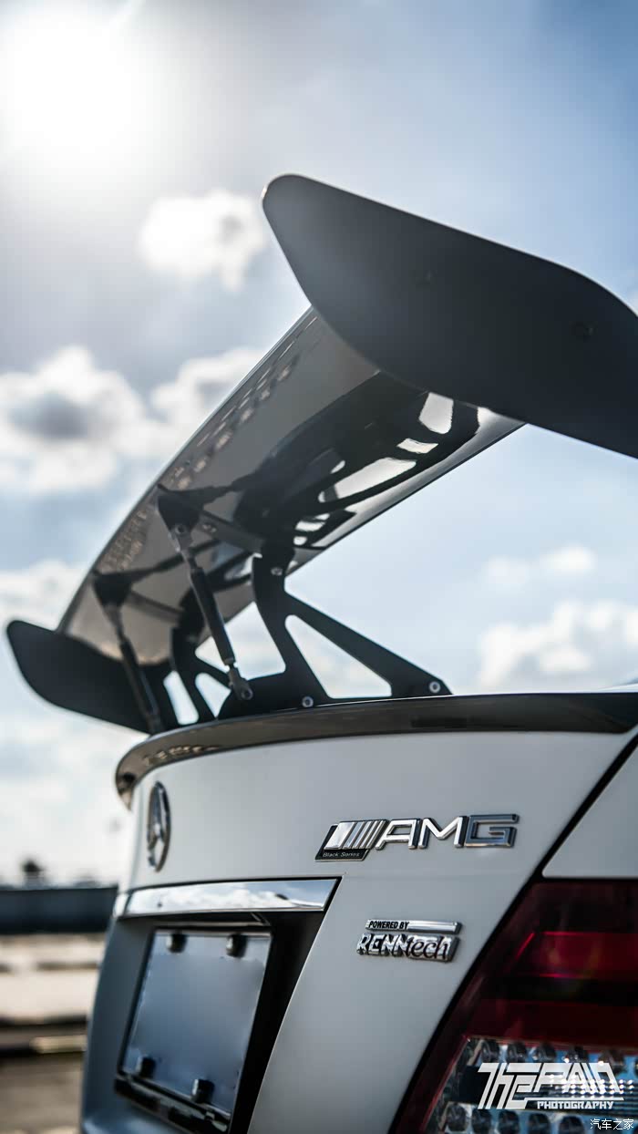 昏暗的停车库中,犹抱琵琶半遮面的是?褪去遮盖的车衣,出现熟悉的排气和象征性能的amg badge夸张凛冽的进气线条,风刀并不是好看的象征而是实实在在的提升车头下压力的从角落窥视的一张,非常喜欢这张的光影层次感投射在阳光下的前侧面,前下扰流板夸张的突出代表着选装的赛道空力套件更换了5300k的bellof灯泡散发出冷漠的光线打开车门后原厂迎宾灯淡淡的白光现在缓缓驶出阴暗的地库水晶蓝天,少有的好天气,亚光白漆在阳光下闪耀出别样的色泽renntech的大尾翼和调节杆,机械美的象征拉远看到的尾部,后部扩散器并没有很夸张,但是配合夸张的后包围,突出的性感“臀部”还是让人过目不忘整个侧后的特写,...