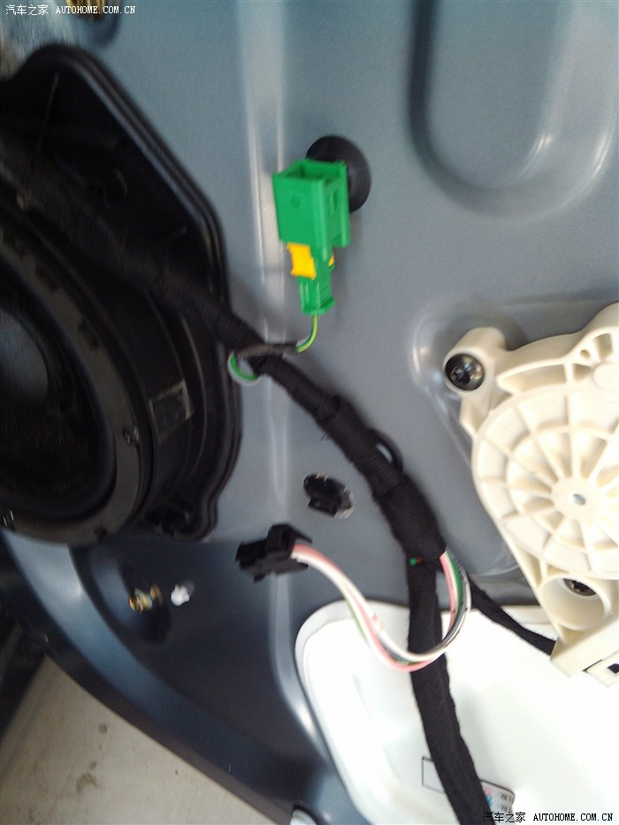 门上的绿色的接线卡子要拆下来 喇叭上方的线也要拿下来