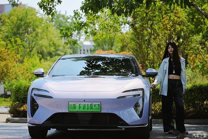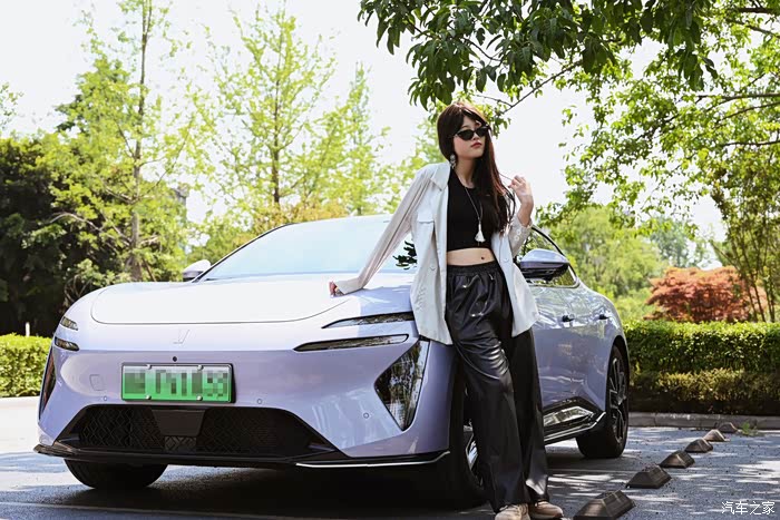 小姐姐不仅人长得好看,选车的眼光同样是很棒的!这台阿维塔06是一台拼色的车身,漆面颜色是黑色拼烟紫,看上去非常别致。然后是车身的造型做非常运动,溜背式的车尾设计加上无边框的车门,外观营造的运动感和时尚高特别强。