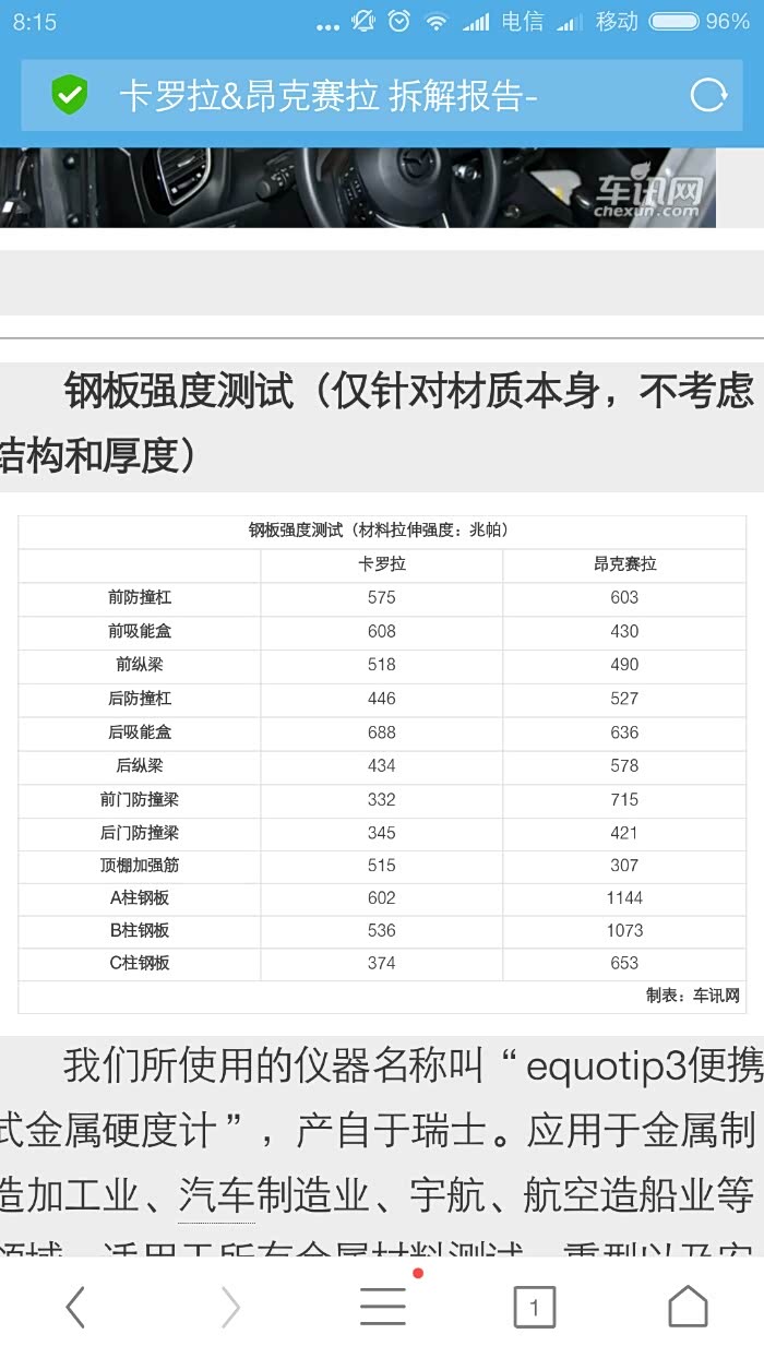 昂克赛拉门里面难道不是超高强度钢?而且是两个双冒形防撞梁,就因为感觉轻就没有根据的就乱说安全不行吗?最后昂克赛拉貌似比艾5重的吧?