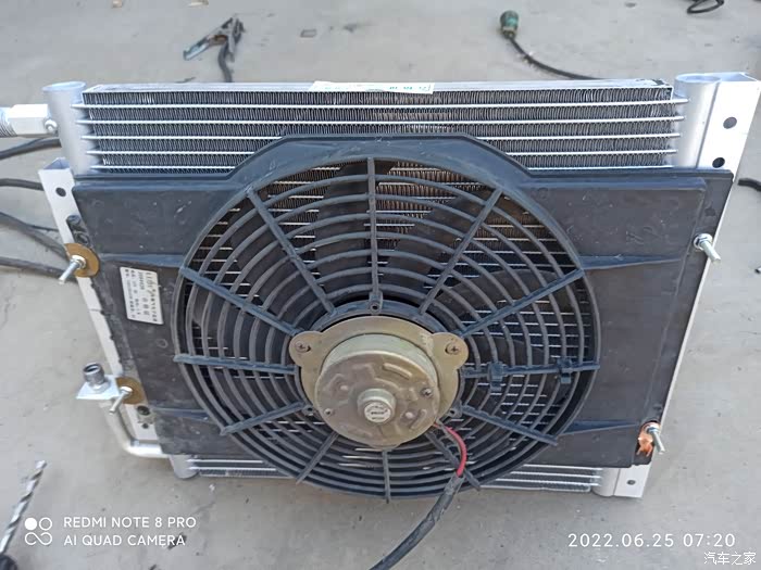 安装好散热风扇,现在前边风扇受驻车空调控制,原车空调控制并到了水箱后边的风扇。很多小车没有专门的空调风扇,开空调就是打开水箱风扇,使用证明这样一切正常。