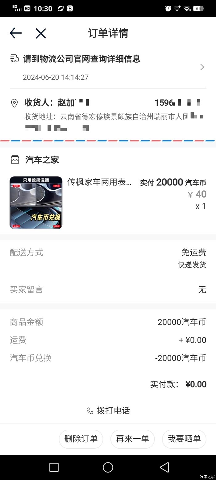 我在汽车之家商城下单购买的传枫家车两用表板蜡,费用是40元,我是用积攒的积分兑换的。美容车辆内饰前后花费的时间约20分钟。还是很简单的,效果也不错。