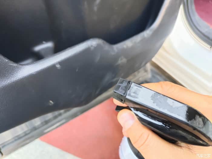 这种黑色的地方最明显,打过蜡后马上就光鲜亮丽了。