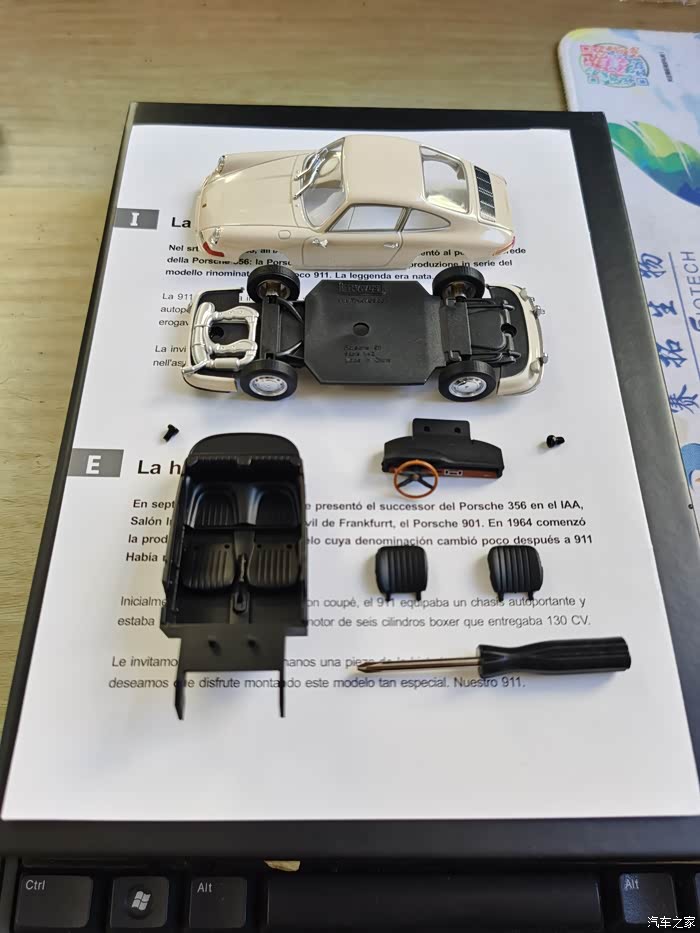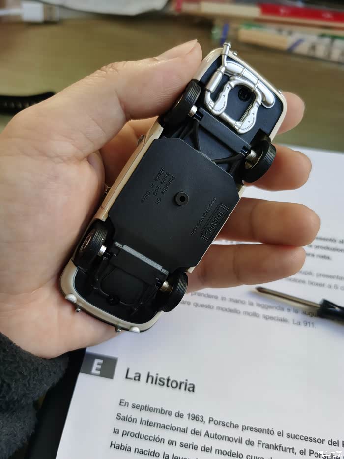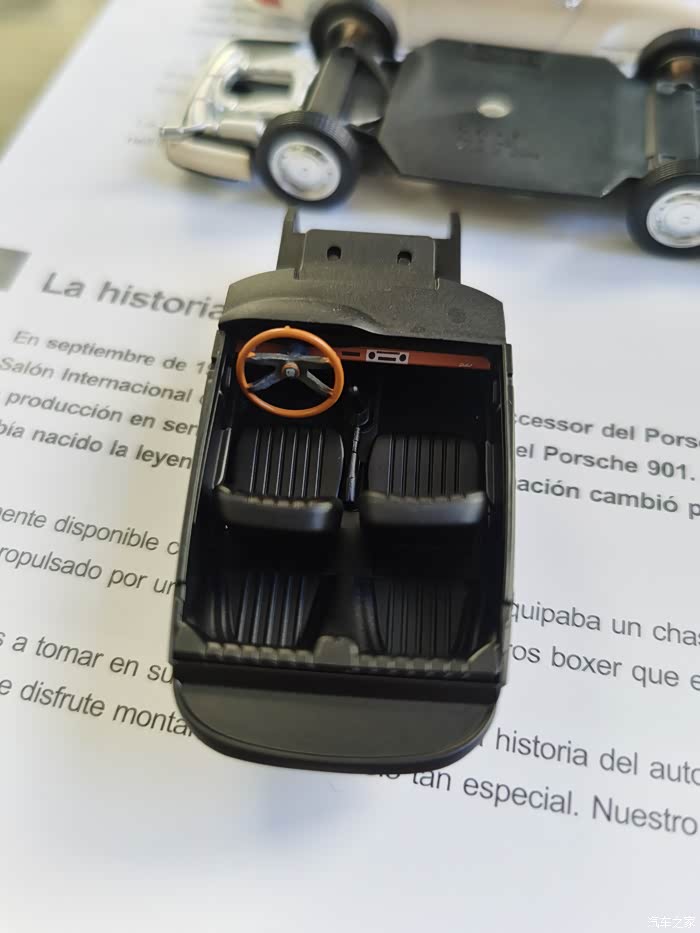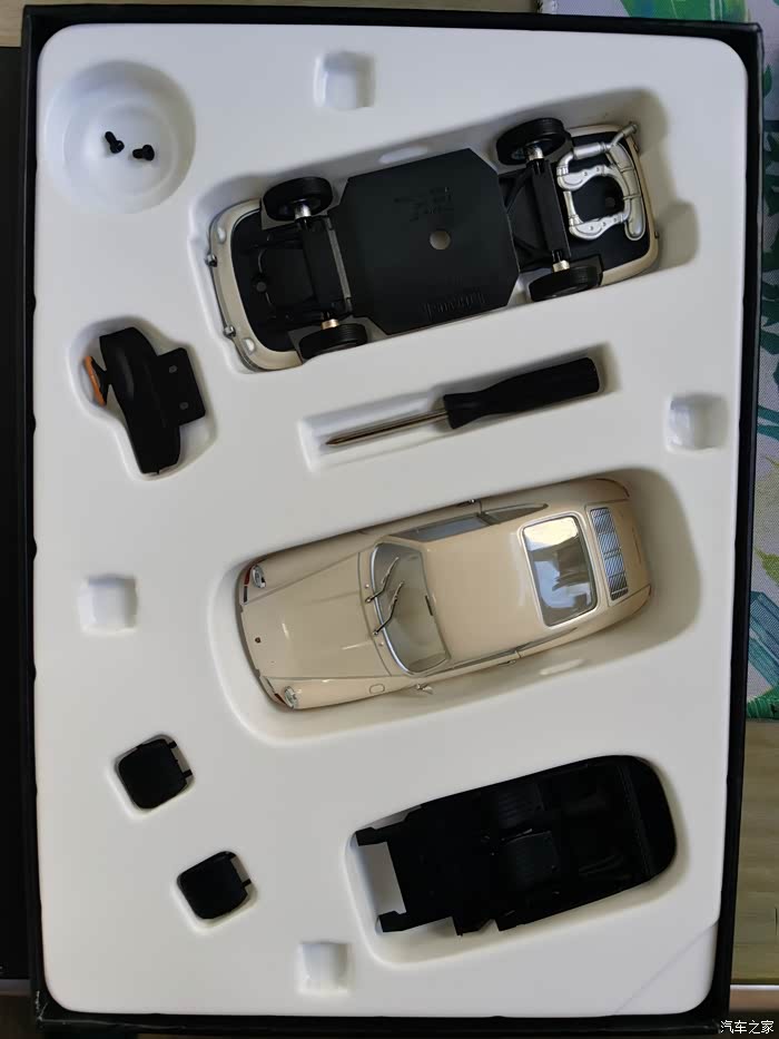 车模介绍:这款车模很特别,因为之前大多接触的都是成品,或者像田宫那种拼装的,而这款是介于两者之间的一款非常有创意的小东西,说它有创意是外壳和漆面跟成品没有二至,说它是拼装,组装起来也非常的简单!品牌为THAVUS,之前从没听说过这个品牌,后来在网上查,是德国的一家以汽车为主题的车模礼品公司,与保时捷有长期的合作,但作为车模品牌来说十分的小众。这款车模也是保时捷官方授权,据说在一些保时捷俱乐部作为小礼物作为纪念的产品。