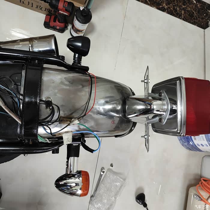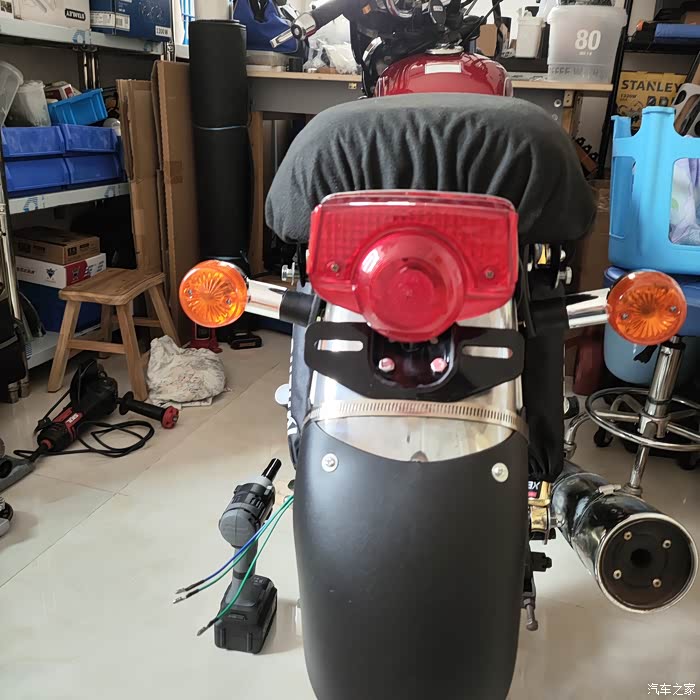 坐垫和后货架要拆掉,车上的转向灯也拆下来了。
