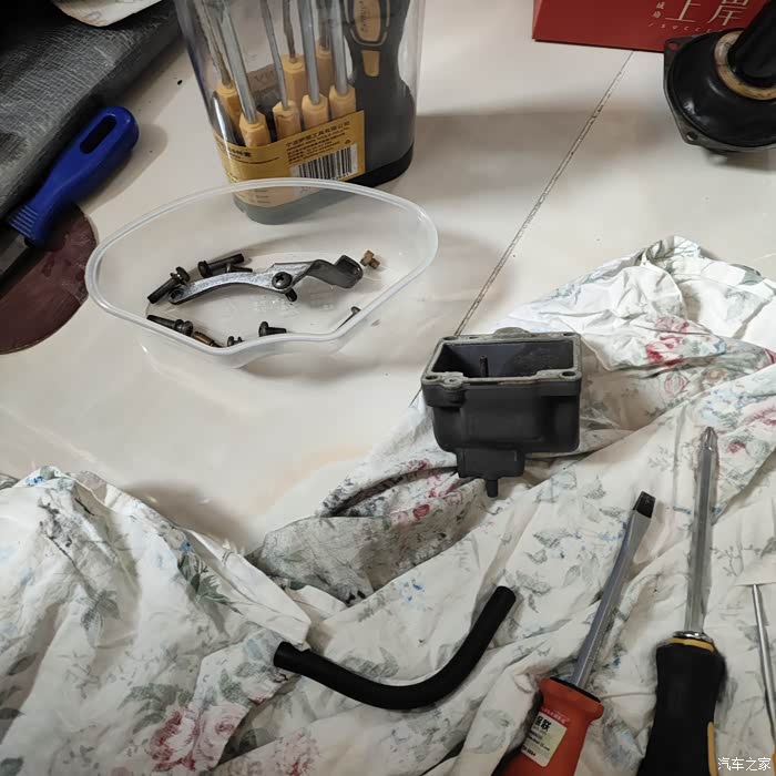 分解,打算把化油器洗一下。
