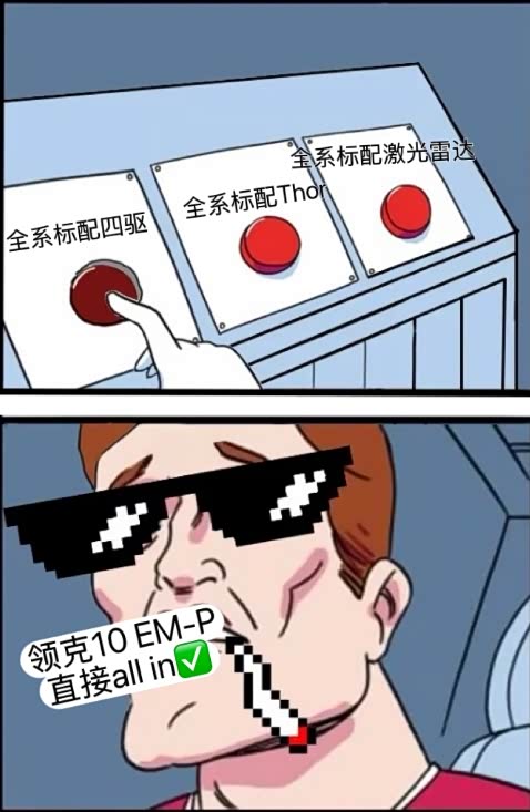 领克10 EM-P的预售价(19.2万起),直接笑出声,这价格刀法精准得堪比水果店老板切西瓜!全系标配四驱+激光雷达+英伟达Thor芯片,入门即顶配,同级独一份。隔壁比亚迪汉L DM-i四驱版裸车25万+,奇瑞风云A9L四驱顶配也要20.79万,领克直接掀桌子:“都别装高端了,我摊牌了!”