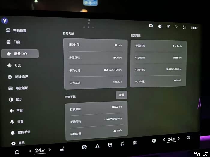 同时,对于非必要的耗电功能,例如氛围灯、香薰和娱乐设备,也可以尽量关闭以节省电力,我个人选择的是经济模式,如果不开空调,不开加热的话,能耗低的时候也可以达到百公里13度电。如果要追求体验感的话也可以选择舒适模式,能耗基本也是在百公里15度电左右。