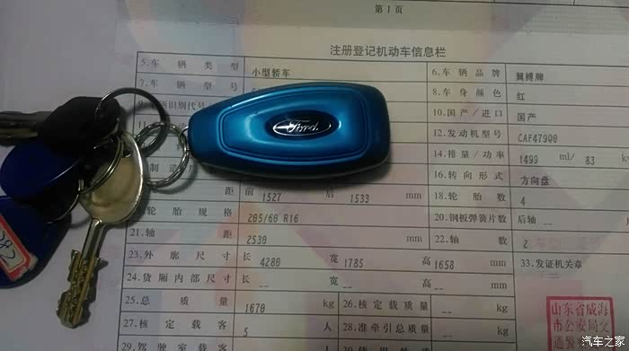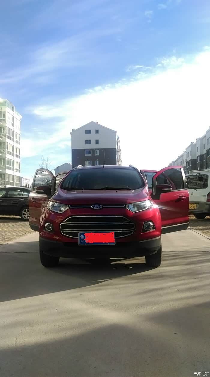 选车经历:楼主是标准的穷二代,小时候感觉那汽车就是有钱人的事,所以对车是基本不懂。 毕了业越发的感觉有车的便利性了,特别是大冬天的,没车实在是很难受啊。可是无奈资金不足啊,毕了业赚啊赚的,房子有了(别误会,县级市非大城市),不行啊,还得赚那装修的钱,好吧,继续努力,不把房子和装修搞定,咋能去娶我心爱的的媳妇呢??等我都搞定了,婚期将近了,我就想,下一步我买不起好的,我也花个2,3 万买个二手车图个方便。 正计划着呢,人家女方父母说了,可以出钱买车,怎么样,不错吧?根据丈母娘给你的标准,我们俩就开始选车,过程相对来说比较简单。我在网上看到一个福特团购会的消息,心想一起玩的兄弟成天跟我说福特福克斯,好吧,那就去看看,到了展厅来参加团购会的真不少啊,我当然了,径直走向那名字绕耳多日,却又不太了解的福克斯,做进去,也就那么回事吧,可能是我不太喜欢轿车吧,因为我们家这边典型丘陵地带,山路不少,我比较喜欢SUV, 眼睛一甩,这旁边的背个书包的是什么?大红色的很精神啊,气场一点不比这福克斯差啊,至少,在当时展厅的阳光和地板的反射下,是这样的。 我做进去副驾驶,驾驶位的有个来参会的大哥,看我来了,就问我,你看咋样,我说还不错(关键是对于一个渴望车又没有车的我来说,小博内饰确实也不错啊),这大哥一个劲给我讲啊,这儿那儿的,什么SYNC 的,人家那是做足了功课来的。我哪儿懂。 后来他硬是拉我一起坐进后排,后来才知道,原来他是想看看后排做3个人到底行不行,呵呵,被利用了,不过没关系,举臀之劳啊。哈哈。好吧,我看这车不错,也知道了,哦,福特翼搏,新生代SUV,FUN手去冒险。。。。。。。。,我一看价格,哇,比我想象的便宜啊,回去研究一下。回来后我就开始 “纸上谈兵”啦,就是网上对比配置啦,说实话,我这水平去试驾能试驾出什么啊? 最主要是昂科拉和翼搏,当时还有什么创酷,2008,更别说什么缤智,XRV,C3XR等等吧,好吧,福特最近几年的新车开发市场还是很快的。不多说昂科拉和小博的对比了,总之,昂科拉当时在大件方面是比小博好,可是想象它的价格啊,有那个价格,我都咬咬牙买翼虎等紧凑型的啦,还买个小型干什么? 是不是,小型的,不就图个经济实惠么? 昂科拉车主勿喷啊。然后轿车对比了蒙迪欧,迈锐宝,508(当时真的价格可以,就是据说发动机太老),然后什么翼虎也看了看。说实话,当时丈母娘给的标准买个小型的有富余,买个紧凑型SUV或者B级的,就只能是乞丐版了,要不然自己添钱,那不是那个事啊,人家那是女方的车,我添钱貌似说不过去啊。想一想,父母都不容易,第一款车没必要要那么好的,父母血汗钱省点挺好的,我觉得,在这点上我比我们这里很多女婿强多啦,很对人一看女方买车,好吧,有好的从不买差的,好像在榨干父母的最大承受度,生怕吃亏啊,就像是过了这个村没那个店一样,我的父母就跟我这么说的,你不买那个20几万的吧,弄出去婚庆不上档次,油耗还不少,没啥意思,反正买不了奥迪以上的那就不如买个家用代步经济实惠啊,给人家省点是点。因为买车我没有挑剔和超出他们家的预算,把丈母娘感动的是稀里哗啦的。。。。。。。咦,貌似跑题了。。。。。。各位看官,不好意思啊,我自夸了。最终,就这样敲定小博了。自动尊贵,因为觉得顶配比标配的还是多了不少东西的。小博的配置性价比在当时那个价位里我觉得绝对是名列前茅,至于大家吐槽的所谓缺点什么后轮鼓刹,非独立后悬挂,我不是很在意。毕竟价位在那里。4S点提车,当时可能大概优惠了5000左右吧,这是把他们的保险优惠啊,送的保养优惠加在一起,不能算是纯现金优惠。当时小博的竞争力很强,用4S人员说的一句话,“双翼的价格很坚挺”。我勒个去。好久没给图片了,大家都看睡了。来几张。