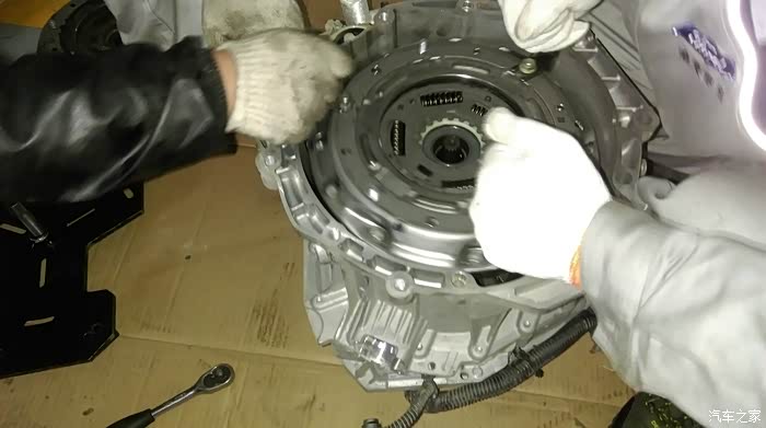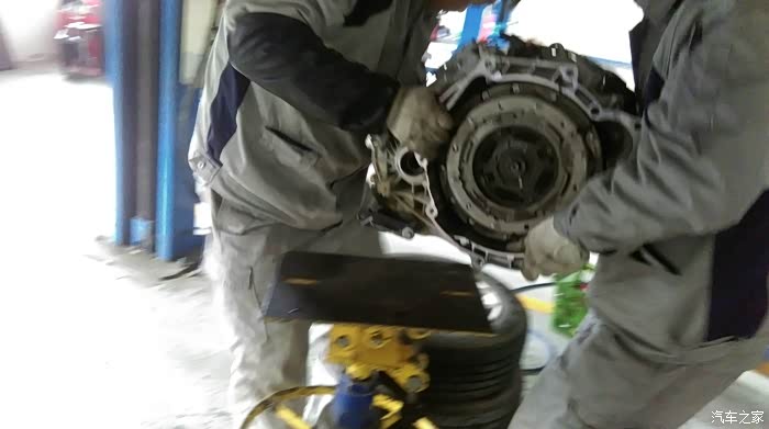 好了,保养完毕,2个人和我一起上了车,其中一个一上手就说,哎,这个车一开就知道没事,很平顺啊,比其他的好太多了,但是,既然上车了,那就去试试。结果呢,找了个本地有代表性的陡坡(我自己都觉得那个坡,估计一般的20万级别的车来了都得抖动)试了几次,好吧,结果超过厂家的标准值,可以更换离合器。我一听,这貌似大手术啊,出乎我的意料啊,我还不想给我的小博动手术啊,才1年半的车,就要拆变速箱啊???正好他说离合器是要跟厂家订货的,免费换但需要等20天左右。我就说,那也好,我再开一段时间试试。在接下来的20多天里,我就很注意变速箱的平顺了,说实话,是不如以前好了,但是真的不严重,最明显的就是1.2 档换挡不够干脆及时,2档换完后转速还是很高,而且换3档的时候会有抖动,时好时坏,有时候竟然听话到1.2档,2000转准时换挡没有丝毫顿挫,让人爱恨交错啊。难道自动变速箱真的有学习功能,要揣摩驾驶者的习惯?我跟媳妇的驾驶习惯不一样导致它神经错乱???换还是不换?后来我一打听,换离合器不用拆变速箱最精密的部件,还算可以,再加上我终于来到论坛看了看,发现不少人都换过了,那我感觉也没什么,25000了,换个新件用用不也还挺好么,好吧,决定了,等到货我就换。12月3.4号2天我的小博接受了手术,请看以下图片以供那些还在犹豫的换不换离合器的朋友们参考。