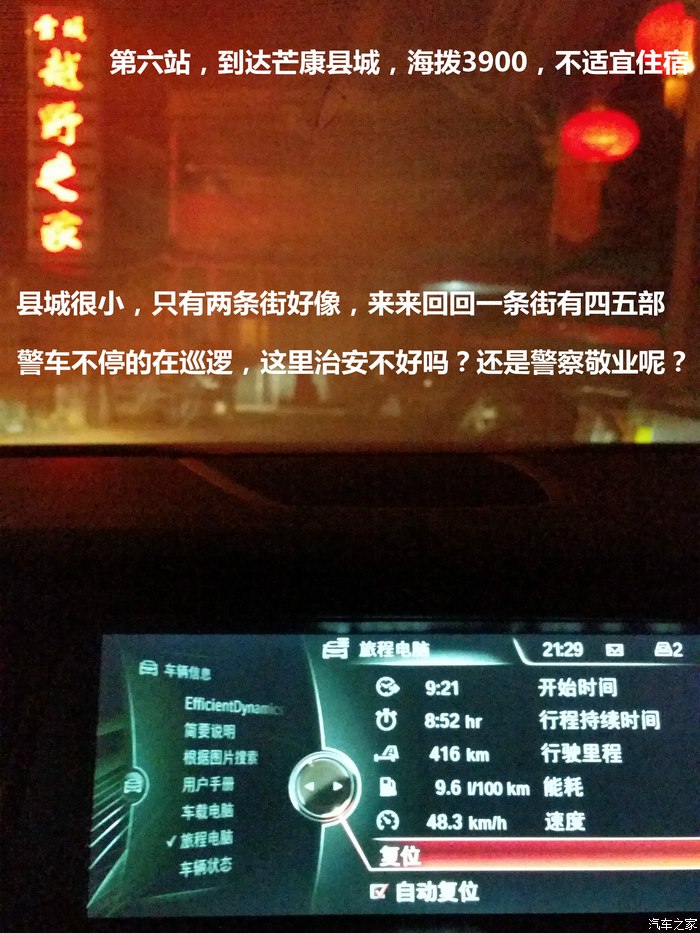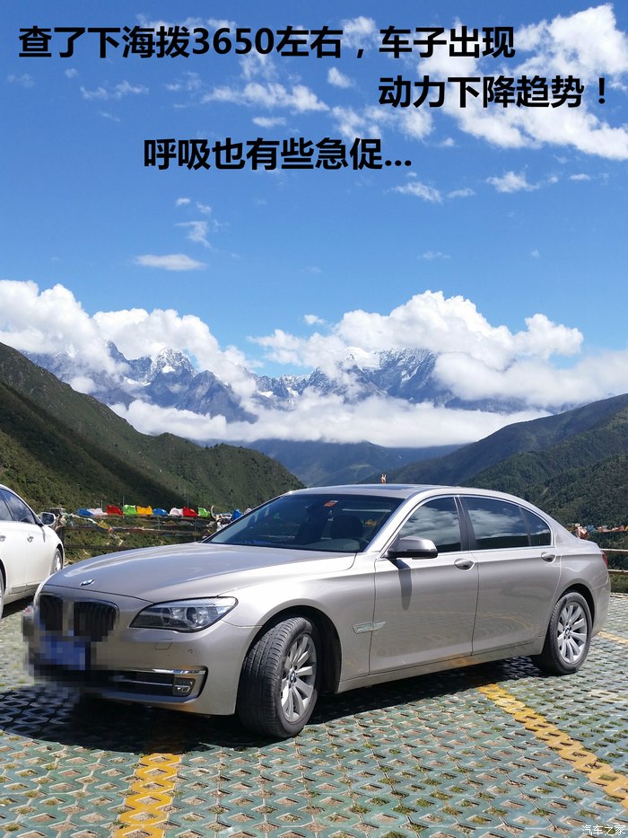一路上都了解好了,成都汉兰达750/天,霸道1000/天。后来到成都一细问,原来还限定每天260公里,超出部分还有另外收费,算了一下,单单租车费要花近两万块。赶巧了,在成都酒店里,打开汽车之家论坛,无意间看到一篇宝马535GT进藏的帖子,之后信心大增,这GT跟730的离地参数是一样的,7系只是轴距多了14厘米而已。这样?何不如开自己的车子进藏吧