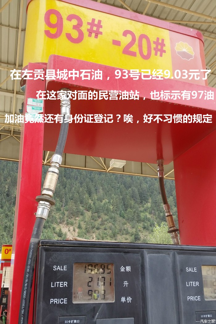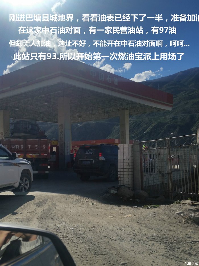 汽油:318线从四川雅江开始,到西藏的林芝大约1200公里左右,没有97油。如果协调的好的话,大概一箱油可以开个700-800公里,也就加些93油就可以了,燃油宝配备。返程109国道,拉萨到青海格尔木1100公里左右没有97油。
