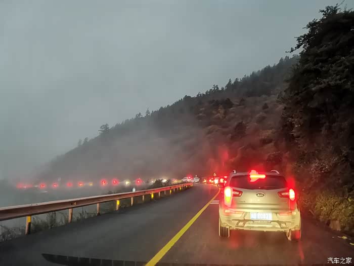 在伸手不见五指的山上堵了两个多小时,通了后60码的速度在山间奔跑,过坑都顾不得会不会沾泥了,还是想回都江堰住…结果同车人有晕车反应,就在耿达住下了。