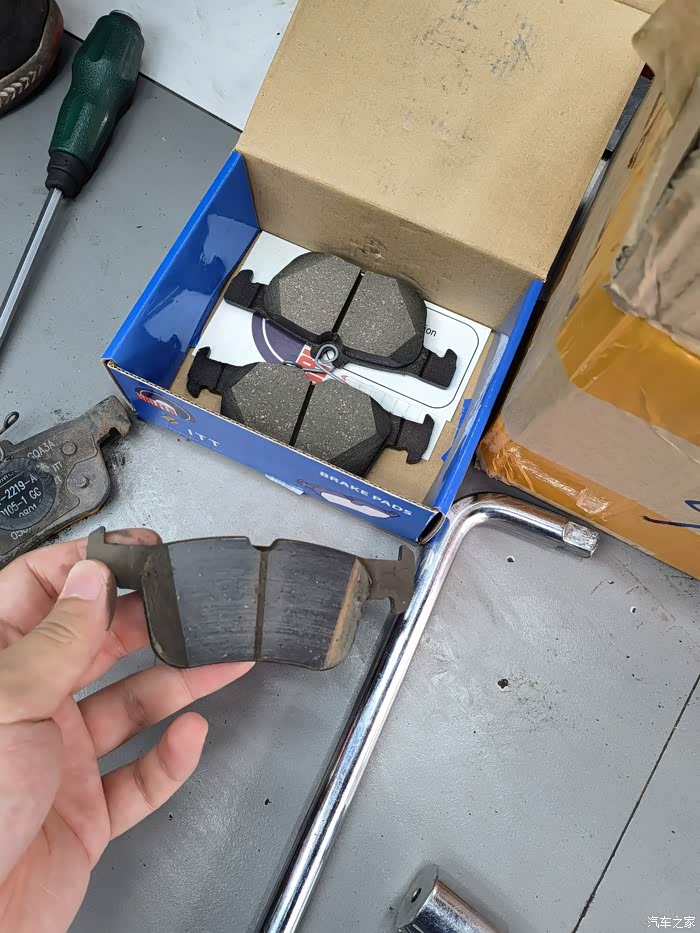 刹车片的形状有点不一样,但是安装位是一样的。这次选的是原厂OEM的噶尔法的,匹配问题不用担心,OEM的质量也让人放心