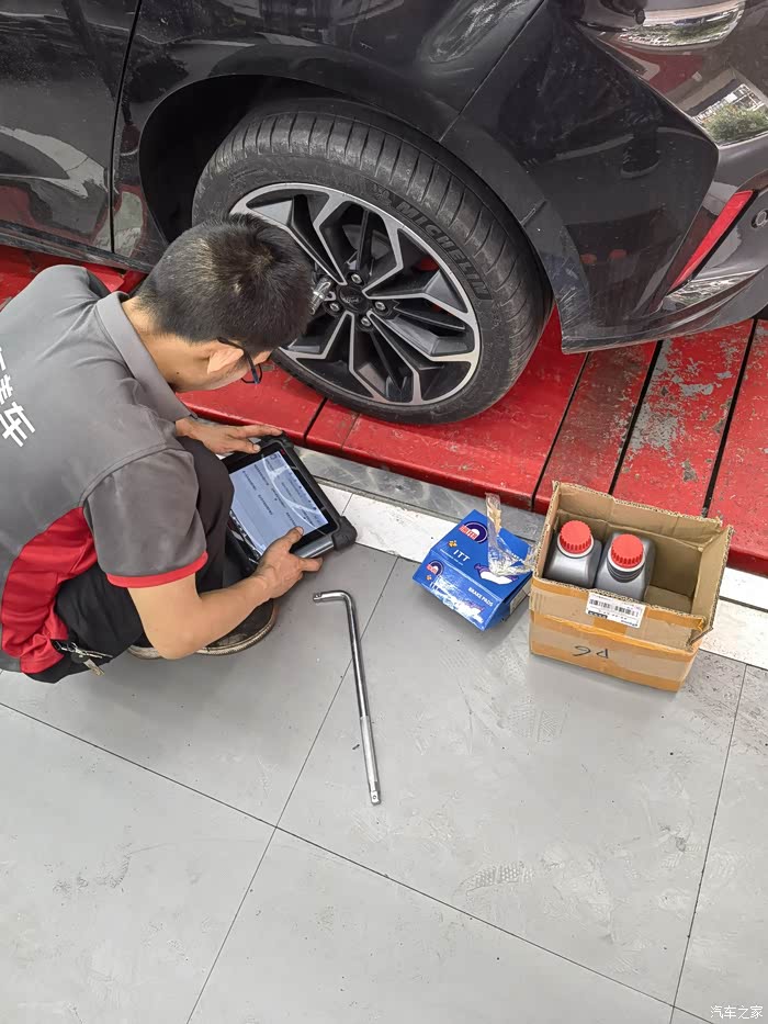 因为小福是电子手刹,所以师傅先用电脑打开了维修模式才能进行刹车片更换