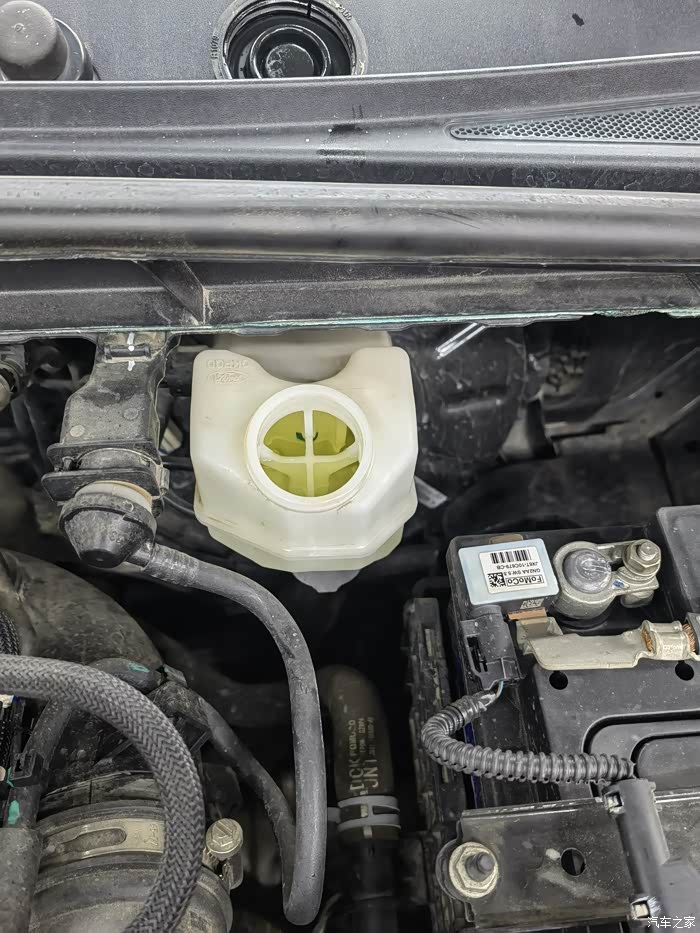 接下来就是更换刹车油了。原车三年4万公里的刹车油还是十分清亮,但是年份到了,根据保养手册的建议应该进行更换了,师傅没有用真空的方法换刹车油,所以只用了不到1L的刹车油。