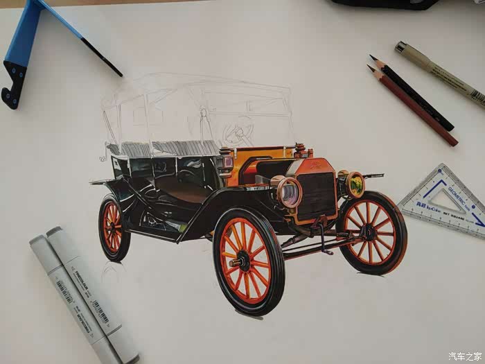 第一辆成品T型车诞生于1908年9月27日,位于密歇根州底特律市的皮科特(Piquette)厂。