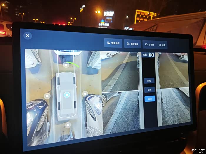 360影像功能齐全,可以同时显示4个车轮的情况,过限宽墩子很好用,360界面整合了自动泊车和循迹倒车控制功能,但缺点也有,太不清晰了,够用而已。