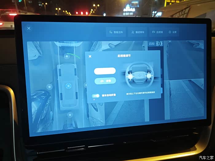 后视镜方向调节也整合到了屏幕,不过调整比较方便,通过方向盘左右方向键就可以,调一次也就够了。
