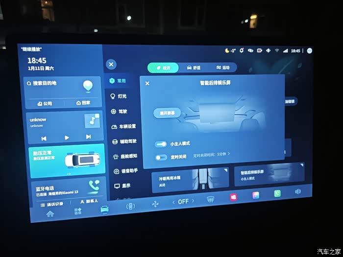 第三个是后视镜与娱乐屏联动,打开后排娱乐屏流媒体后视镜自动启动,关闭娱乐屏后视镜自动关闭,保证车后视野不被遮挡,后排娱乐屏也可以设置展开时间,控制小朋友看视频的时长,还是考虑的比较周到的。