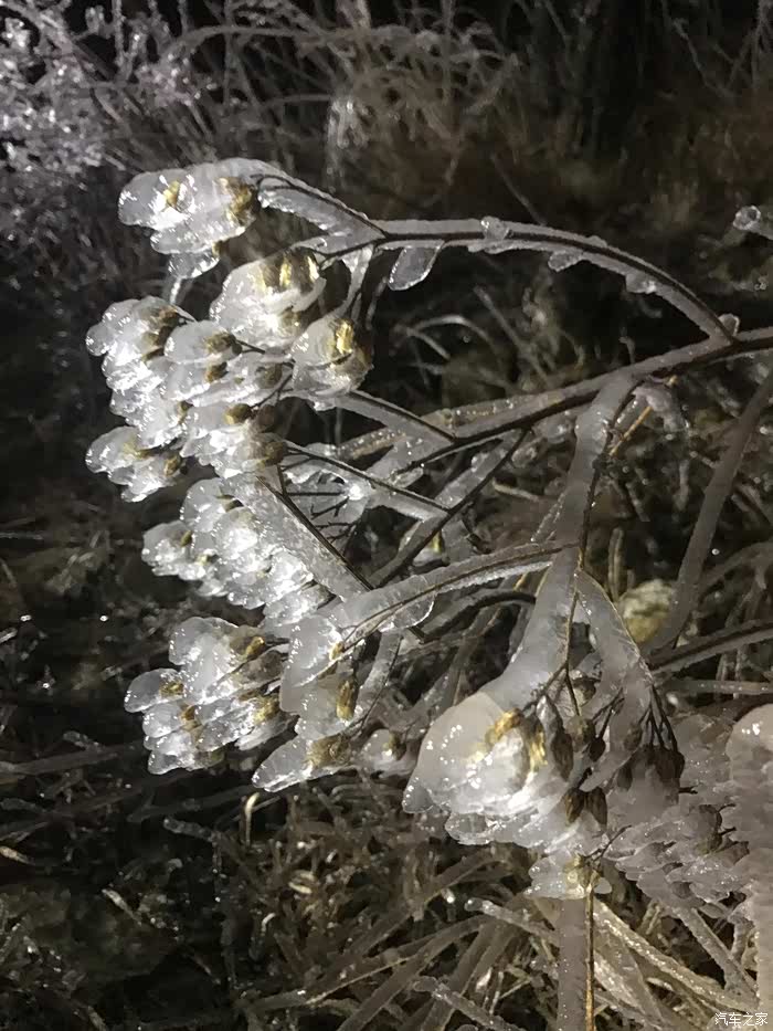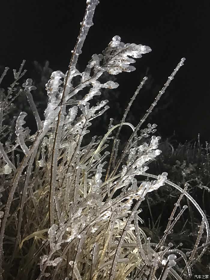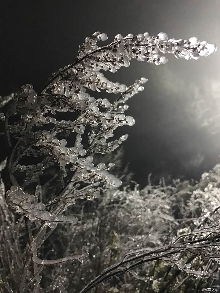 16年11月 大安山,开车上山,路面结冰半夜走路下山,冰封下的绝美景色,至今难忘