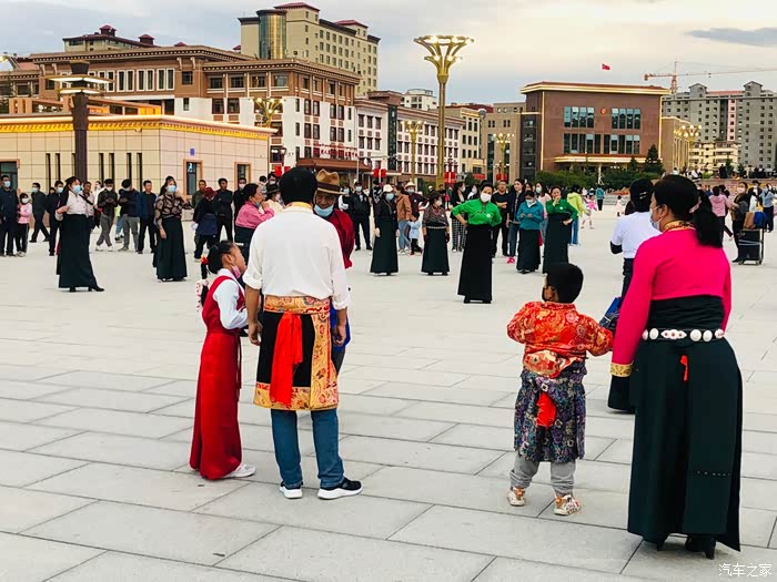 夕阳西下,广场上的人们,放下一日的忙碌,跳起了锅庄舞。