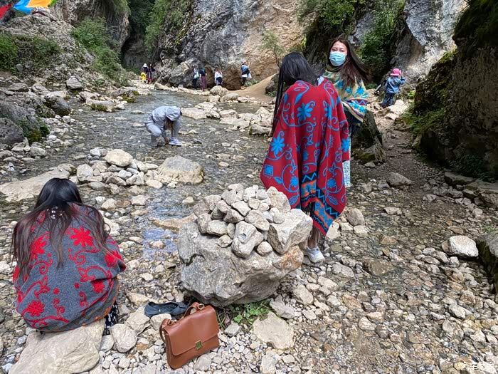 外地来的游客,看到这么清澈的水流,也不由把玩一下。