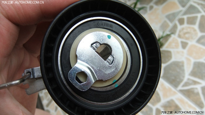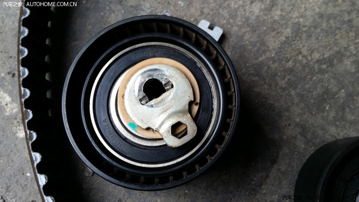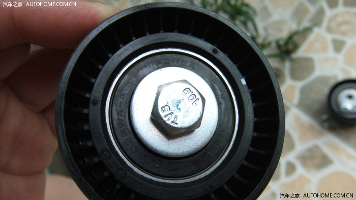 就得惰轮,KOREA产的,不过已经有很大的间隙了,左右哐当了,幸亏换的及时,不然皮带容易掉啊。