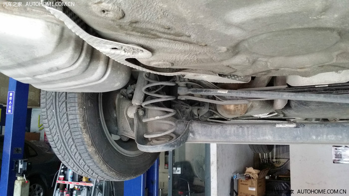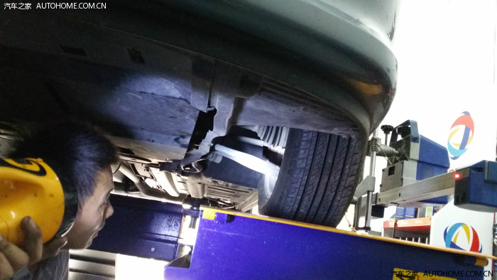 另外拍拍老板的新速腾,他把车架起来,是在看后悬架钢板有裂纹吗,他害怕啊,怕跑着跑着断了。