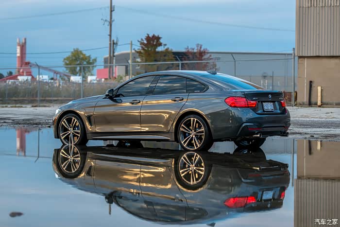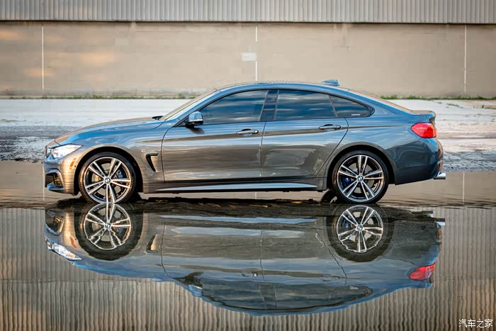 - 其实4系GranCoupe跟双门版的侧面线条并没有什么太大的区别,但是值得一提的就是4系4门4驱是车身离地间隙最高的一台四系,前轮离叶子板大约两指半,后轮大约四指,所以从图片里看整个车非常俯冲,离地间隙高的好处就是平时上坡下坡不用太过顾忌,直上直下就好,即使是装了前唇也不需要太过于小心。 -
